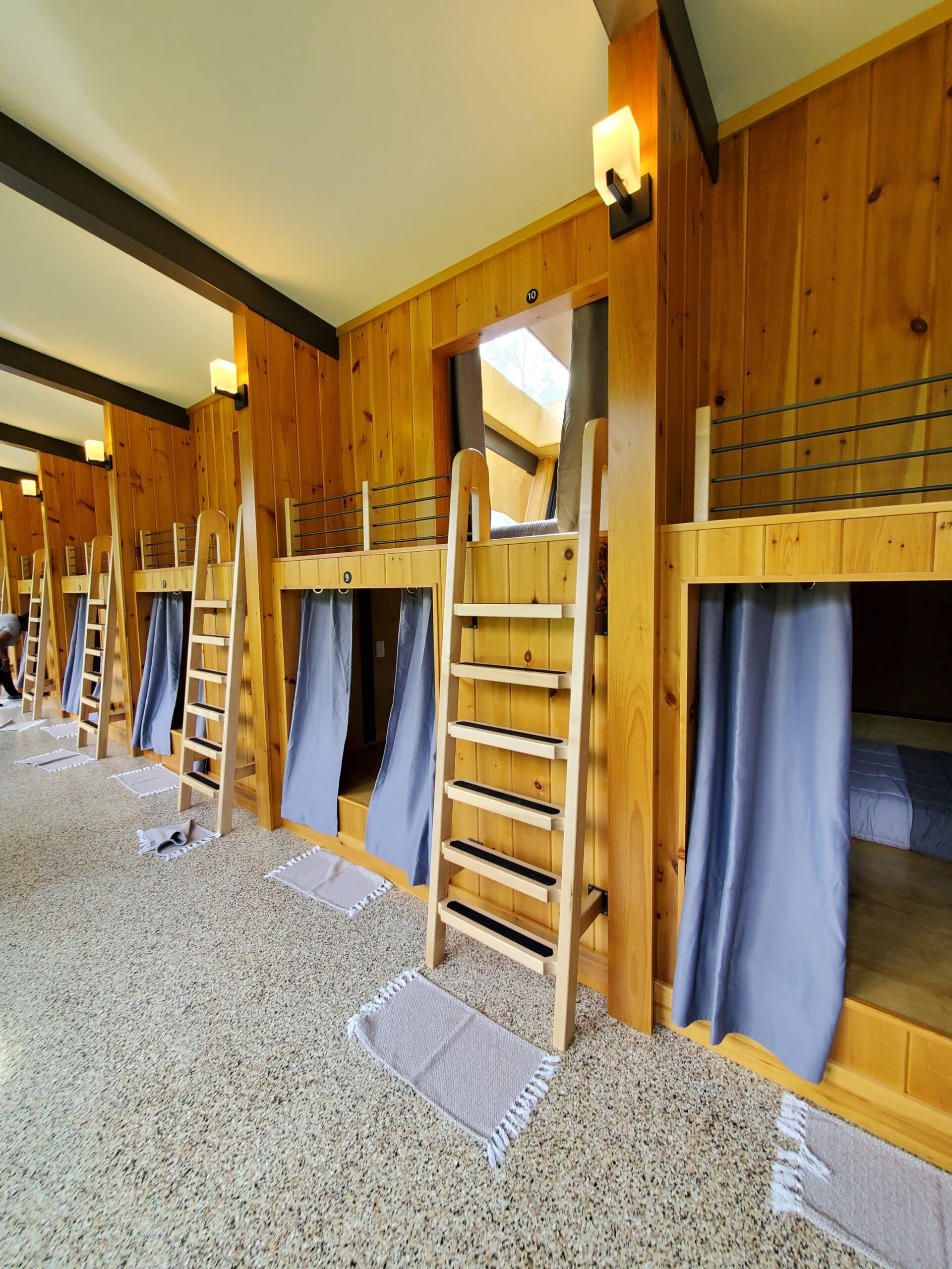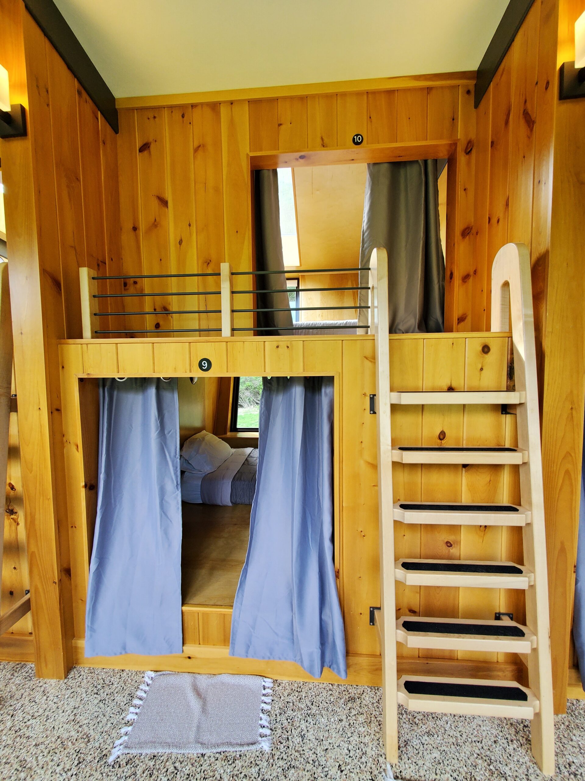 River Mountain has four cabins and within each cabin are 12 pods. In addition to the cabin, there are three (3) canvas teepees, a historic log cabin, and a “big red” barn. They offer complimentary happy hour. (You got to try the Amber Ale. I don’t like beer/ale, but I was drinking it like it was water.) Anywho, I digress. Private bonfires, expansive deck with patio seating, and beautiful mountain views.