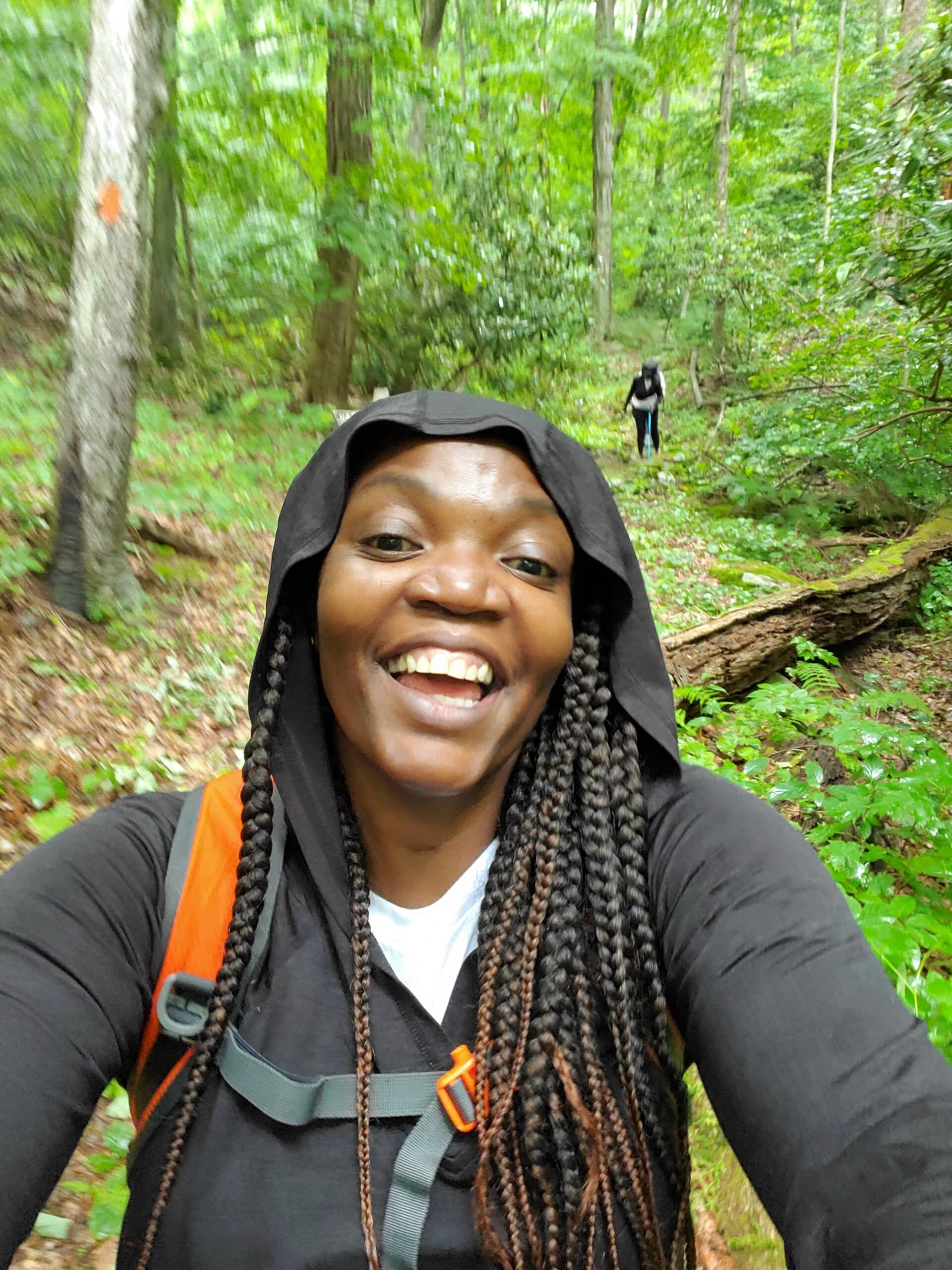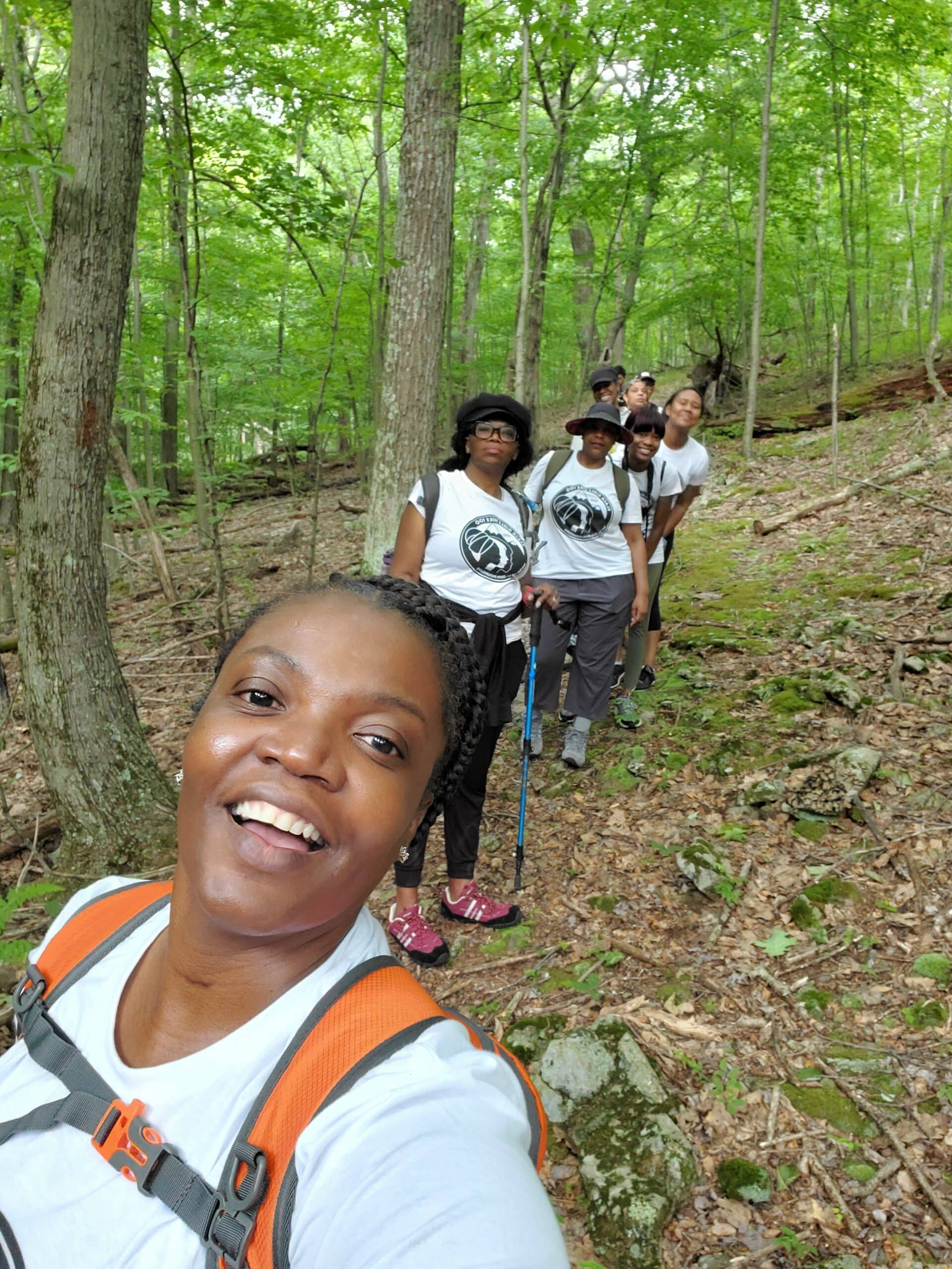 We learned the importance of the hiking stick/pole. How to avoid snakes? How to find a trail using Blazers? Blazers serve as markers to let hikers know they’re on the right track. We were on the Orange Trail.